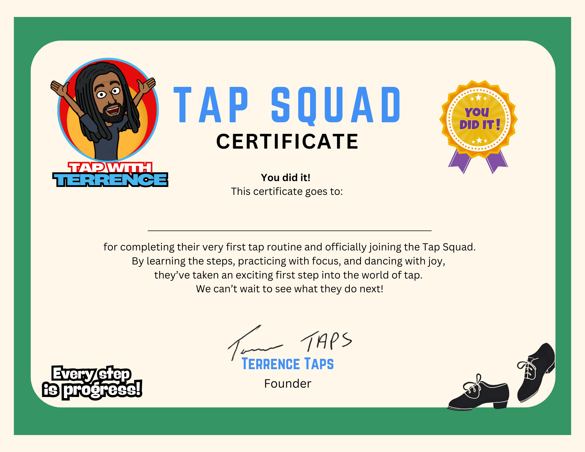You can download your printable Tap Squad Certificate below and add your name to it.